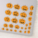 These Halloween stickers feature various sizes of jack-o'-lantern depictions with silly, funny face carvings. Stickers like these might be fun to use or give as gifts at a Halloween party.