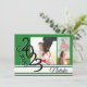 Green, white and black 2023 varsity stripe invitation. Three photos can be added to this festive Class of 2023 Graduation invitation or announcement in green. Customise text on back to fit your needs.