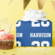 Varsity sports blue and white custom name number wrapping paper