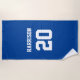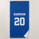 Varsity sports blue white custom name number beach towel