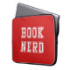 Perfect for book lovers, this laptop sleeve features the words "Book Nerd" in white against an editable background (click customize to change the background color).
