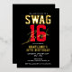 This varsity-style Swag 16 birthday invitation is perfect for anyone looking to add a touch of fun and youthful energy to their celebration. The design features bold, eye-catching colours and a classic varsity font that will make any recipient feel like they're part of the team. The invitation includes all the necessary details, including the date, time, location, and RSVP information. This invite is sure to set the tone for a memorable and exciting celebration of this milestone birthday. If you are not celebrating a 16th birthday you can alter the age on the invite as preferred.