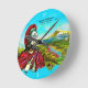 The clock did not take as long to arrive as I thought it might and was extremely well packaged. I didn't do the measurements so I didn't realize it is a little smaller than the average clock but that does not matter (just make sure you check if that's important to you).It is really nifty! It seems very solid and well made not flimsy at all. It has been going well and has kept good time in its few weeks on my wall. Nice product. Gets noticed too! Nicer in real life than the picture but true to the picture