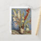 A fine art postcard with the post-impressionist painting, Vase with Gladioli and Chinese Asters (1886), by Vincent van Gogh (1853-1890), a Dutch artist. A still life with a vase of white, yellow, and red gladiolus against a blue background.