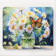 Beautiful flower mouse pad with a beautiful illustration of a glass vase of flowers with a Monarch Butterfly siting on one of the daisies.