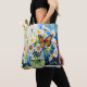 Beautiful flower tote bag with a beautiful illustration of a glass vase of flowers with a Monarch Butterfly siting on one of the daisies.
