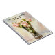 The front of this journal spiral notebook features my original photograph of a crystal vase with pretty roses in it and processed in a watercolor style for an artsy flair. A Bible verse from 2 Corinthians 9:15 is at the top of the image.