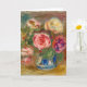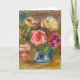 Vase of Roses (1913-1915) | Original artwork by French Impressionist artist Pierre-Auguste Renoir (1841-1919). The fine art painting depicts an abstract impressionist still life of pink roses in a blue vase against a moody background.