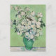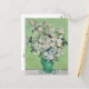 A fine art postcard with the post-impressionist oil painting by Vincent van Gogh, Roses (1890). A green ceramic vase with a bouquet of roses against a green background. He painted many versions of rose bouquets. This painting has faded and was originally pink roses against a yellow-green background.