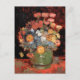 A fine art postcard with the painting, Vase with Zinnias (1886), by Vincent Van Gogh (1853-1890), a Dutch Post-Impressionist artist. A still life of a green ceramic vase with red, orange, and white zinnia flowers.