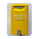 A close up photograph of a yellow post box in Vatican City printed on a souvenir fridge magnet.