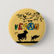 Vegan badge with cute, happy cow goat and rooster silhouettes leaping for joy.