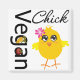 Vegan Chick t-shirts, buttons and products with cute yellow chick displaying a flower on her head and her taste for vegan foods. Fun to wear and makes great gift for those vegan gals.