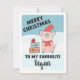 This Vegan Christmas flat greeting card features a nice cartoon piglet with a red hat and scarf and some colourful presents, on a snowy background.
