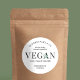 Promote your plant based products with a custom vegan product label. This modern 100% vegan sticker includes space for your business name, location and tag line so you can make professional stickers for your plant based products.