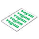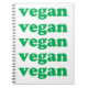 "vegan" green letters, white background notebook