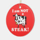 Vegan gifts. Vegan ornaments, Vegetarian gifts. Cow rights anti-meat t-shirts and products with picture of a cute cow and text reading, I am Not a Steak. Shop animal rights t-shirts, mugs and gear for vegans and animal activists alike. Picture of a cow reads I am not a steak on t-shirts, buttons, magnets, apparel and more!
