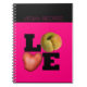 Love fruits and vegetables image with black typography, apple and potato. Original cooking notebook for vegetarians.