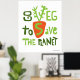 Poster with a hand lettering doodle style vegan or vegetarian slogan saying: Go veg to save the planet, written in green with a focus point in the middle, where is a big orange carrot.