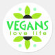 Attractive green floral design on this vegan sticker with the words Vegans Love Life.