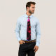 Vegas Flamingo night lights Neck Tie featuring the pink color of Flamingo Hotel sign at night viewed from the strip, with palm trees silhouettes in the foreground, with a black background. The blue text on the top back reads "Las Vegas" and it can be customized.