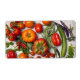 Top view of an organically homegrown vegetable and herb harvest, including tomatoes, cucumbers, beans, hot peppers, basil, sage and oregano