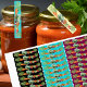 Two sheets full of skinny labels with watercolor vegetables design. The same image of carrots, cabbage, tomatoes and beets are on all labels with four different background colours. Price includes 2 sheets of 48 labels each = 96 total labels. The colours are black, aqua blue, yellow, and maroon. Waterproof and weatherproof and tear resistant, fix labels over a jar lid, package, closed box, or any place you need to prove there has been no tampering with the product. Perfect for homemade vegetarian meals, salads, jars of sauce, pet food, or anything.