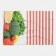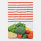 Vegetables on Red and White Striped Background Tea Towel