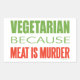 - - - - - - - - - - - - - - - - - - - - - - - - - - - - - - - - - - - - - - - - - - - - - - - - - - - - - - - - - VEGETARIAN BECAUSE MEAT IS MURDER! One-of-a-kind vegetarian design feature big words that boldly speak against cruelty and killing animals for food. If you're anti-meat, pro PETA, you'll love this unique item from Green Neighbour. Great gift for any animal rights activist. - - - - - - - - - - - - - - - - - - - - - - - - - - - - - - - - - - - - - - - - - - - - - - - - - - - - - - - - - Shop the OlogistShop store online for other unique items custom printed with art, designs, graphics, pictures and sayings on: … short sleeve, raglan and long sleeve tee shirts; casual, fitted, spaghetti, organic and ringer t-shirts; regular and hooded sweatshirts; hoodies; creepers, … large and small tote bags for grocery shopping, books, kids toys, beach stuff or use as a travel bag … commuter, messenger and courier bags - perfect as a workday bag, as an overnight attaché, with add-on pockets and straps, or use as an everyday bag … square and round mini, large and big huge buttons for clothing, caps, hats … square, round and flexible magnets for refrigerator, file cabinet, boats … neckties to wear anywhere … bumper stickers for cars, trucks, boats … greeting cards, note cards, postcards and postage stamps … stationery, letterheads with matching envelopes, business cards and labels for company, personal or business use … 3 ring binders for pictures and photographs or fly tying recipes … notepads, memo pads and notebooks for keeping a journal, diary, log, record or use for drawings, sketches, illustrations … dishwasher and microwave safe ceramic and glass mugs for coffee, latte, java, espresso, tea and more … beer steins for display on mantle or shelf or for a party and celebrating … stainless steel travel and commuter mugs … recycled aluminium and 100% BPA free Liberty Bottleworks water bottles … porcelain tea pots, pitchers and jars for candy, snacks and treats … ceramic tile, sandstone and cork coasters for your house or office … tshirts and cermaic food and water bowls for your cat, dog or other pets … wood trinket, keepsake and gift boxes to hold jewellery, coins, collectibles … jigsaw puzzles, with and without a storage tin … display plaques for home, business or office … MoJo brand cocktail party napkins, placemats, towels and pillows … art, posters and prints on regular or archival paper or canvas, with or without a frame, for your home, company, store or shop … gel mousepads and cloth computer mouse pads for home, school, home or office … cases, sleeves and portable Doodle speakers for a cell phone, ipad, ipod, iphone or laptop computer and other electronic devices … folio for smartphones, journals, notebooks or planners … ornaments for Christmas, Hanukkah and other holidays for your tree, home décor, car hang tags, the uses are endless. Humourous and funny designs for those with a sense of humour / humour - all are one of a kind. Some items are made in America. Great gifts for - men, women, boys, girls, kids, children, baby, infants, teens, brother, sister, dad, father, mum, mother, grandpa, granddad, grandfather, grandma, grandmother and friends, too! - - - - - - - - - - - - - - - - - - - - - - - - - - - - - - - - - - - - - - - - - - - - - - - - - - - - - - - - - Items in the store come in many different colours including white, black, grey, grey, brown, tan, red, orange, yellow, green, blue, purple, pink and lots of shades in-between. All items can be customised with your own text or personalised with a name - just click on the “Customise It” button. - - - - - - - - - - - - - - - - - - - - - - - - - - - - - - - - - - - - - - - - - - - - - - - - - - - - - - - - -