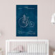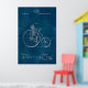 An old invention of a bicycle or velocipede patented in 1891 designed for wall art on a blueprint background.