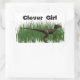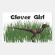 Clever Girl written in prehistoric-type writing above a drawing of a velociraptor. Perfect for a sticker. Apply it to all your favourite places: on notebooks, backpacks, cell phones, or any other place where a sticker works! Available in other sizes and shapes, but check the "preview" of your design before ordering to make sure you like the way it looks.