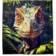 This shower curtain has a Velociraptor on it.