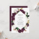 Sophisticated floral wedding invitation features a bouquet of bold velvet magnolia and ivory flowers and rose gold glitter and copper leaves.