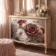 Decoupage_Boutique presents an exquisite rose study that transforms ordinary furniture into luxurious art pieces. This dramatic composition features deep burgundy and blush roses captured in stunning photorealistic detail. The moody atmosphere and masterful light play create depth against the misty background.