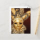 Customisable postcard with beautiful vintage Renaissance theme featuring a golden jester Venetian mask.