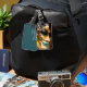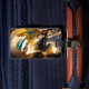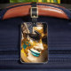 A handmade carnival mask in Venice, Italy, painted in bold colours of turquoise, gold and black. This luggage tag is fully customisable and ready to be personalised.