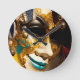 A handmade carnival mask in Venice, Italy, painted in bold colours of turquoise, gold and black. This clock is fully customisable.