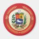 The national coat of arms of Venezuela, is infused into the center of a faux gold rimmed circle shape. Around this image, is a faux gold laurel wreath which completes the design.