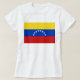 The front of this t-shirt boldly displays the Venezuelan flag with its distinctive white stars on a blue band with a yellow band above and red band below. This is matched at the back by an attractive map of Venezuela.