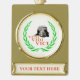 Ancient Roman military helmet made of copper metal. Text Veni, Vidi, Vici. Drawing of a green laurel wreath around. Square format products and gifts. Gold Plated Banner Ornament. Customisable. You can change the template text.