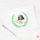 Ancient Roman military helmet made of copper metal. Text Veni, Vidi, Vici. Drawing of a green laurel wreath around. Square format products and gifts. Square Sticker