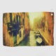 Bask in the romantic autumn glow of Venice, Italy with a beautiful Italian painting printed in earthy hues of rusty orange, golden yellow, and olive green. Wander down a quiet canal lined with moored boats and old buildings past a Venetian balcony with red flowers still in bloom. ♡ Idyllfire