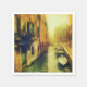 Bask in the romantic autumn glow of Venice, Italy with a beautiful Italian painting printed in earthy hues of rusty orange, golden yellow, and olive green. Wander down a quiet canal lined with moored boats and old buildings past a Venetian balcony with red flowers still in bloom. ♡ Idyllfire