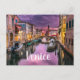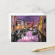 Beautiful photographic image of a canal in Venice Italy under purple tinted cloudy skies that create a stunning reflection in the canal water.