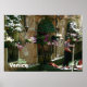 Lovely Venice, Italy travel poster, with a graphic enhanced photo of a gondolier next to a floral laden brick building. Great looking piece of wall art.