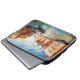 The sleeve is made of nice feeling material and seems very durable. I'm not sure how easy it'll be to clean, but the construction seems sound and the fabric is quick thick. I also like the double zipper. The printing is lovely and appears durable. The white on black contrast is nice, and the design very elegant.