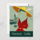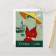 Venice postcard. Fashionable beach resort and a woman in red dress. Postcard with a text you can customise.