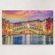 Famous Ponte Rialto in Venice night skyline - puzzle with the most romantic city of Italy, Venezia.