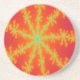 This brightly coloured sandstone coaster features a fractal image that is reminiscent of a thunderstorm on Venus. It has a bright orange background with bright yellow lines coming out from the centre that look like burning bolts of lightning. In the centre of each lightning bolt there is a blue line that reminded me of a vein resulting in the title Venous Thunderstorm.