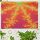 This awesome kitchen towel features a fractal image that is reminiscent of a thunderstorm on Venus. It has a bright orange background with bright yellow lines coming out from the centre that look like burning bolts of lightning. In the centre of each lightning bolt there is a blue line that reminded me of a vein resulting in the title Venous Thunderstorm.